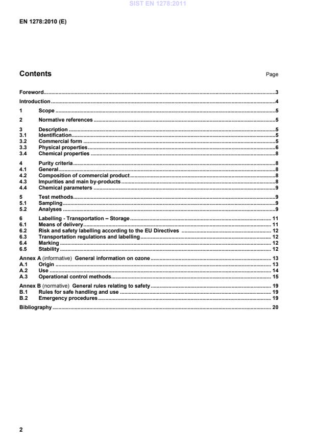Keywords: EN 1278:2010, ozone, water treatment, drinking water, CEN, ozone concentration, iodometric titration, sampling, purity criteria, safety, labelling.
