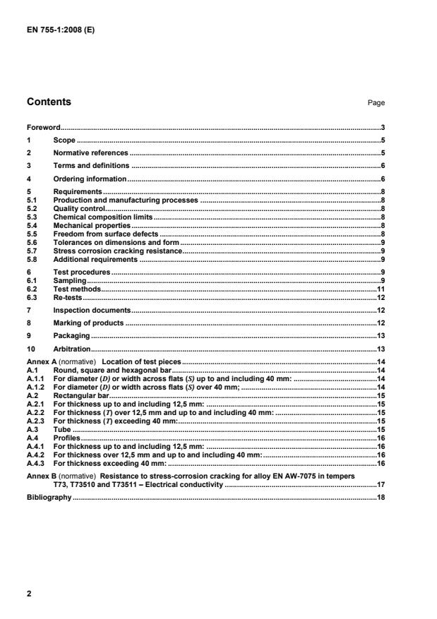EN 755-1:2008 is a standard published by the European Committee for Standardization (CEN). Its full title is "Aluminium and aluminium alloys- Extruded rod/bar, tube and profiles - Part 1: Technical conditions for inspection and delivery". This standard covers: This document specifies the technical conditions for inspection and delivery of wrought aluminium and aluminium alloy extruded rod/bar, tube and profile for general engineering applications. This document does not apply to: - forging stock (EN 603), - extruded precision profiles in alloys EN AW-6060 and EN AW-6063 (EN 12020), - products delivered in coils (prEN 13957), - coiled tubes cut to length (prEN 13957).