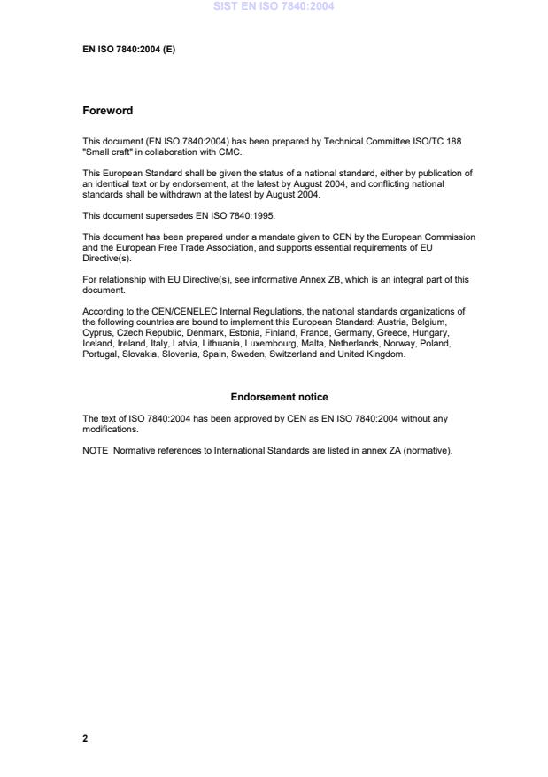 ISO 7840 was prepared by Technical Committee ISO/TC 188, Small craft.