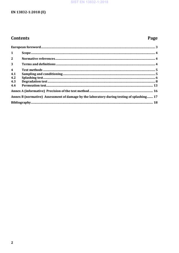 Assessment of damage by the laboratory during testing of splashing . 17 Bibliography . 18