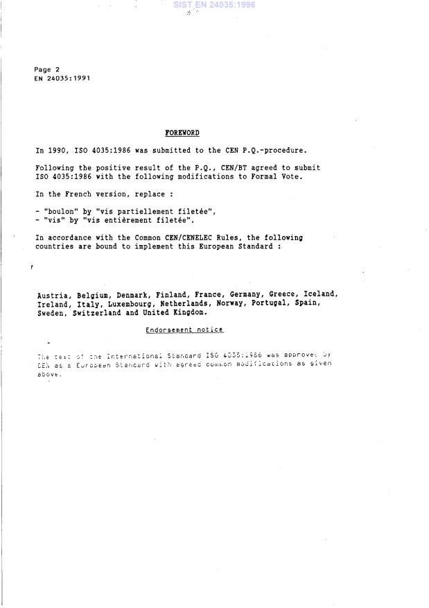 EN ISO 4035:2000 - Hexagon thin nuts (chamfered) - Product grades A and B (ISO 4035:1999) - Effective Date
