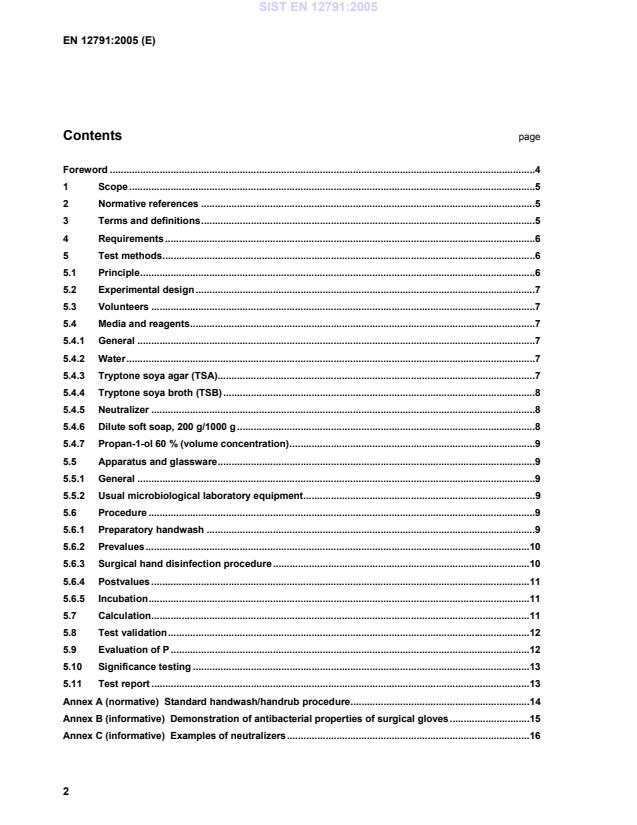 EN 12791:2005 is a standard published by the European Committee for Standardization (CEN). Its full title is "Chemical disinfectants and antiseptics - Surgical hand disinfection - Test method and requirement (phase 2/step 2)". This standard covers: This European Standard specifies a test method simulating practical conditions for establishing whether a product for surgical hand disinfection reduces the release of hand flora according to requirements described in clause 4 when used for the disinfection of the clean hands of volunteers.