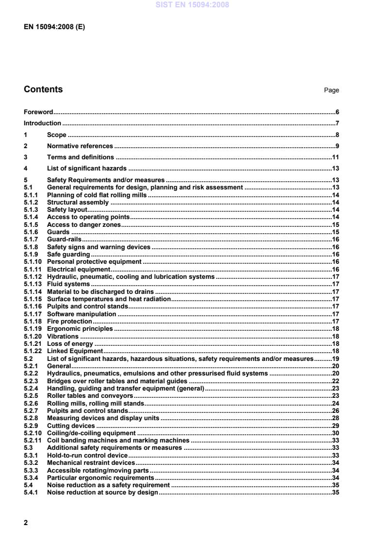 Tables Table 1 — Significant hazards, hazardous situations, safety requirements and/or measures.20 Table 2 — Main noise sources of cold flat rolling mills equipment and exemplary noise reduction measures.37 Table A.1 — Stop functions.45 Table B.1 — Example of declared dual-number noise emission values for work stations and specified measuring points.51