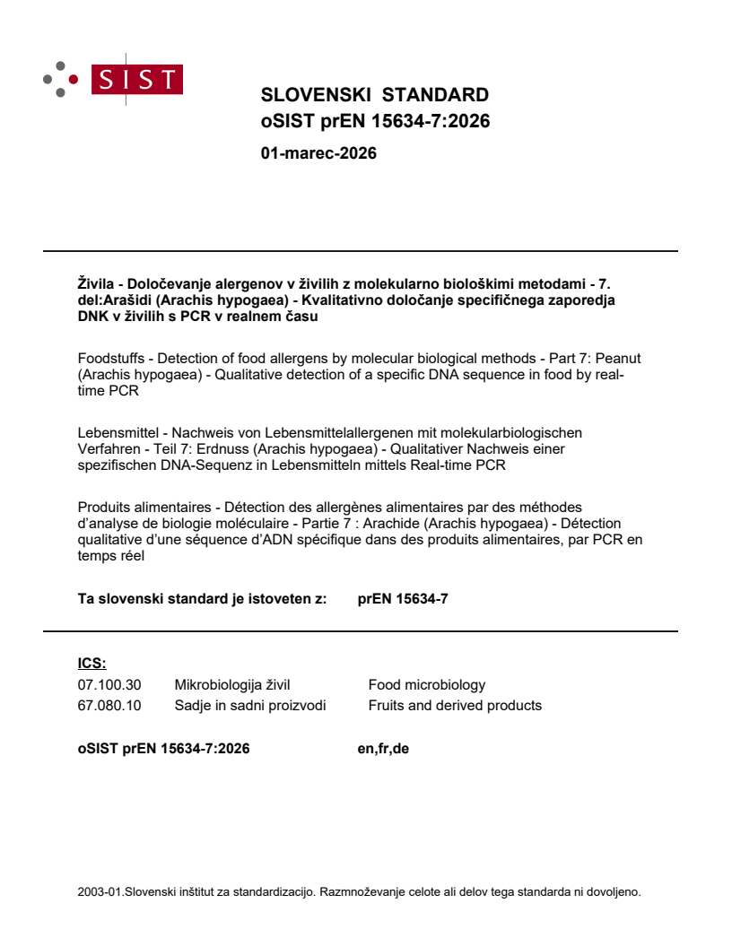 Živila - Določevanje alergenov v živilih z molekularno biološkimi metodami - 7.