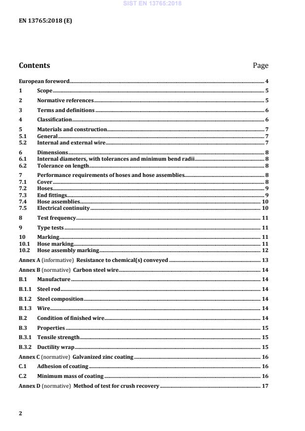 Batch tests for hoses and hose assemblies . 27 Bibliography . 28 SIST EN 13765:2018