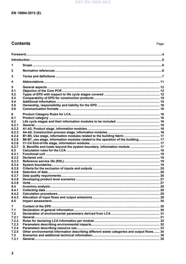 For the EPD of construction services the same rules and requirements apply as for the EPD of construction products. 2 Normative references The following referenced documents are indispensable for the application of this document. For dated references, only the edition cited applies. For undated references, the latest edition of the referenced document (including any amendments) applies. CEN/TR 15941, Sustainability of construction works — Environmental product declarations — Methodology for selection and use of generic data EN 15942, Sustainability of construction works — Environmental product declarations — Communication formats: business to business EN 15978, Sustainability of construction works — Assessment of environmental performance of buildings — Calculation method EN ISO 14025:2010, Environmental labels and declarations — Type III environmental declarations — Principles and procedures (ISO 14025:2006) EN ISO 14044:2006, Environmental management — Life cycle assessment — Requirements and guidelines (ISO 14044:2006) ISO 15686-1, Buildings and constructed assets — Service life planning — Part 1: General principles and framework ISO 15686-2, Buildings and constructed assets — Service life planning — Part 2: Service life prediction procedures SIST EN 15804:2012