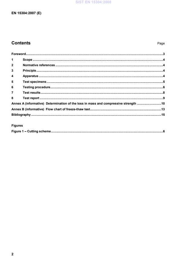 EN 15304:2007 is a standard published by the European Committee for Standardization (CEN). Its full title is "Determination of the freeze-thaw resistance of autoclaved aerated concrete". This standard covers: This document specifies a method of determining the freeze-thaw resistance of autoclaved aerated concrete manufactured according to prEN 12602 or EN 771-4.