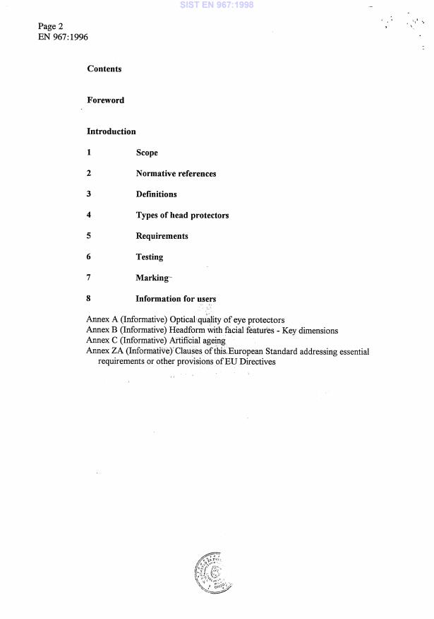 EN 967:1996 is associated with the following European legislation: EU Directives/Regulations: 89/686/EEC; Standardization Mandates: M/BC/CEN/90/2. When a standard is cited in the Official Journal of the European Union, products manufactured in conformity with it benefit from a presumption of conformity with the essential requirements of the corresponding EU directive or regulation.