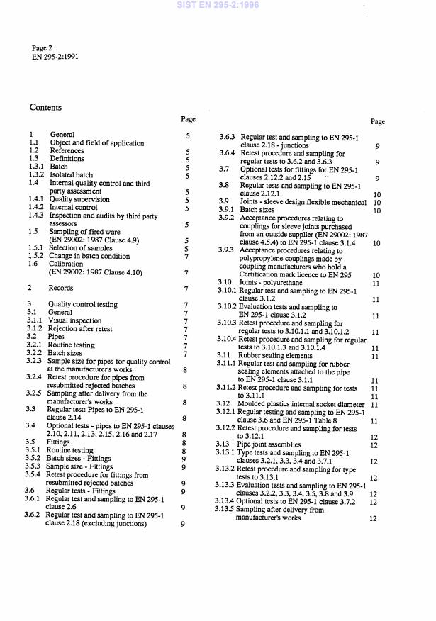 EN 295-2:1991 is a standard published by the European Committee for Standardization (CEN). Its full title is "Vitrified clay pipes and fittings and pipe joints for drains and sewers - Part 2: Quality control". This standard covers: This part of this European Standard specifies requirements for manufacturer's internal quality control, third party assessment and inspection. Note: where reference is made to clauses in EN 295-1 and EN 295-3 it is clearly stated.