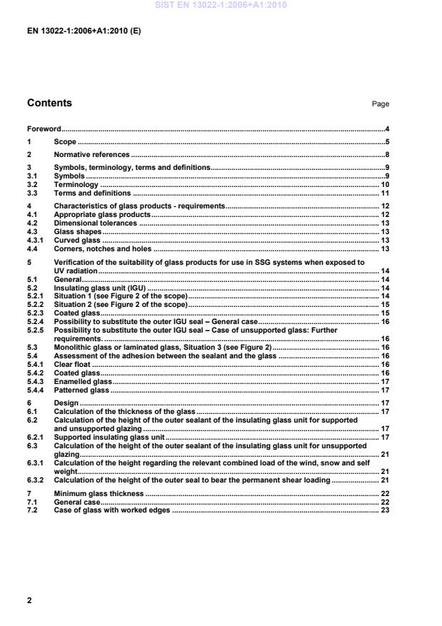 Ta evropski standard opredeljuje zahteve za primernost za uporabo podprtih in nepodprtih steklenih proizvodov za uporabo na področju “strukturne zasteklitve” (SSG). Štiri shematske risbe SSG sistemov so prikazane na Sliki 1 in tri risbe prerezov sistema SSG tipa II so za ponazoritev prikazane na Sliki 2. Ta evropski standard glede steklenih proizvodov se šteje kot dodatek zahtevam opredeljenim v ustreznih standardih glede preverjanja primernosti za uporabo v SSG sistemih. Ta evropski standard obravnava samo silikatna stekla iz mešanice natrijevega hidroksida in kalcijevega hidroksida. Iz obsega uporabe tega evropskega standarda je izvzeta plastična zasteklitev.