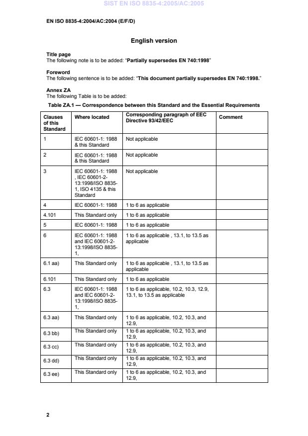 Title page The following note is to be added: “Partially supersedes EN 740:1998”