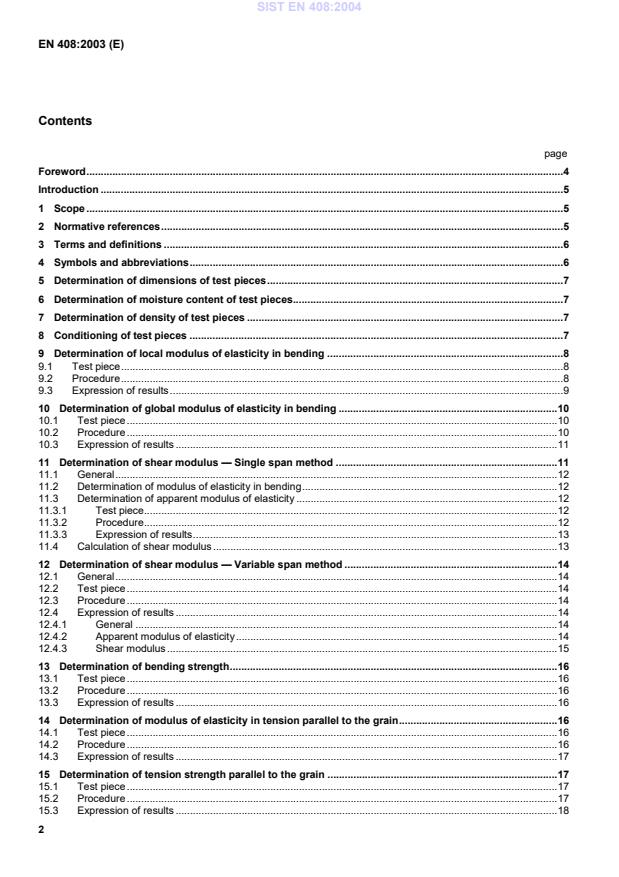 EN 408:2003 is a standard published by the European Committee for Standardization (CEN). Its full title is "Timber structures - Structural timber and glued laminated timber - Determination of some physical and mechanical properties". This standard covers: This European Standard specifies test methods for determining the following properties of structural timber and glued laminated timber: modulus of elasticity in bending; shear modulus; bending strength; modulus of elasticity in tension parallel to the grain; tension strength parallel to the grain; modulus of elasticity in compression parallel to the grain; compression strength parallel to the grain; modulus of elasticity in tension perpendicular to the grain; tension strength perpendicular to the grain; modulus of elasticity in compression perpendicular to the grain; compression strength perpendicular to the grain and shear strength. In addition, the determination of dimensions, moisture content, and density of test pieces are specified. The methods apply to rectangular and circular shapes (of substantially constant cross section) of solid unjointed timber or finger-jointed timber and glued laminated timber.