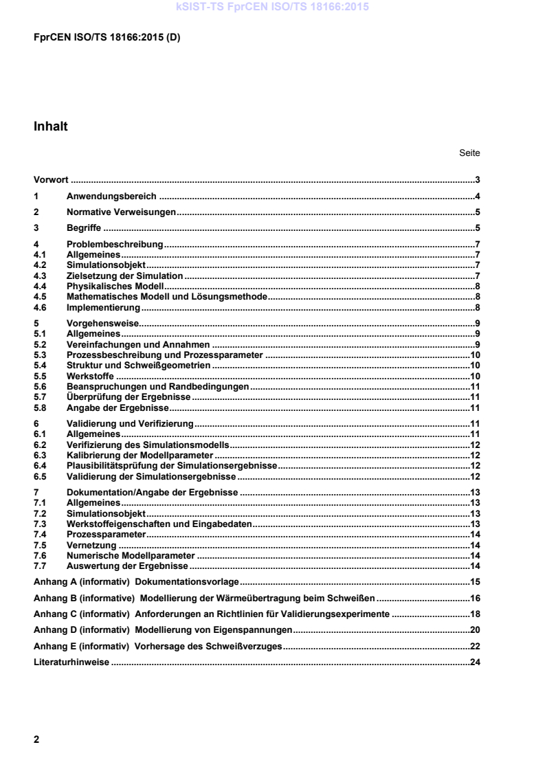 Diese Technische Spezifikation befasst sich mit der Vorgehensweise zur Durchführung, Validierung, Verifizierung und Dokumentation einer numerischen Schweißsimulation zur rechnerischen Abbildung des Schweißprozesses (CWM, en: computational welding mechanics). Hierzu bezieht sich diese Technische Spezifikation vorrangig auf die thermische und mechanische Finite-Elemente-Methode (FEM) (FEA, en: finite element analysis) beim Schmelzschweißen (siehe ISO/TR 25901:2007, 2.165) von metallischen Bauteilen und Konstruktionen.
