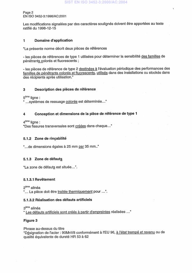 EN ISO 3452-3:1998/AC:2001 is a corrigendum published by the European Committee for Standardization (CEN). Its full title is "Non-destructive testing - Penetrant testing - Part 3: Reference test blocks (ISO 3452-3:1998)". This standard covers: CMC - Overlooked mistakes in French version