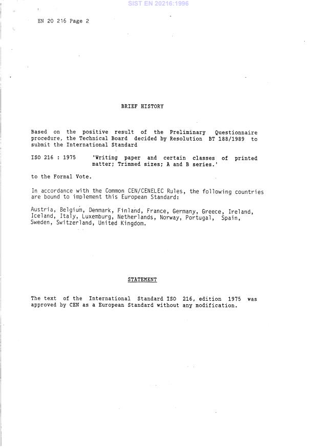 2003-01.Slovenski inštitut za standardizacijo. Razmnoževanje celote ali delov tega standarda ni dovoljeno.Pisalni papir in nekatere vrste tiskovin - Obrezane pole - Formata A in B (ISO 216:1975)Schreibpapier und bestimmte Gruppen von Drucksachen - Endformate - A- und B- Reihen (ISO 216:1975)Papiers d'écriture et certaines catégories d'imprimés - Formats finis - Séries A et B (ISO 216:1975)Writing paper and certain classes of printed matter - Trimmed sizes - A and B series (ISO 216:1975)85.080.10Pisarniški papirOffice paperICS:Ta slovenski standard je istoveten z:EN 20216:1990SIST EN 20216:1996en01-april-1996SIST EN 20216:1996SLOVENSKI
