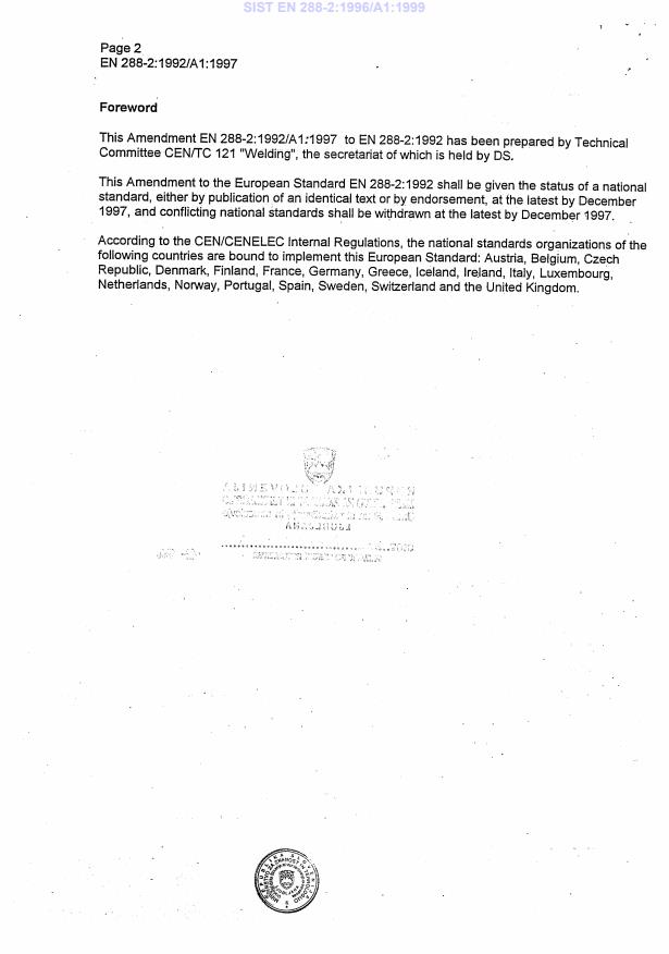 Ta slovenski standard je istoveten z: EN 288-2:1992/A1:1997