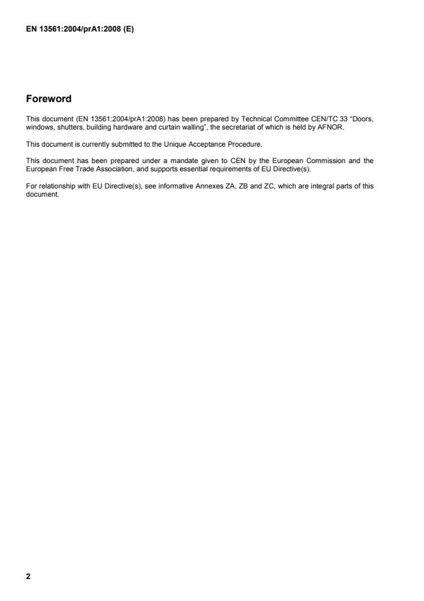 This document (EN 13561:2004/prA1:2008) has been prepared by Technical Committee CEN/TC 33 “Doors,