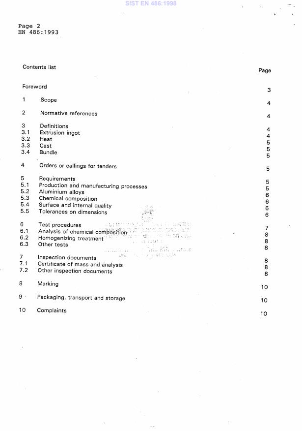 EN 486:1993 is a standard published by the European Committee for Standardization (CEN). Its full title is "Aluminium and aluminium alloys - Extrusion ingots - Specifications". This standard covers: This European Standard specifies the general requirements to be met by extrusion ingots of aluminium and aluminium alloys obtained by semi-continuous or continuous casting, form primary or recycled metal, for general engineering applications.