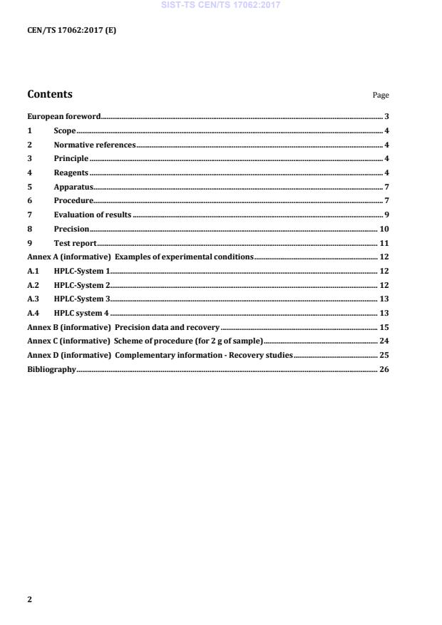 CEN/TS 17062:2017 is a technical specification published by the European Committee for Standardization (CEN). Its full title is "Foods of plant origin - Multimethod for the determination of pesticide residues in vegetable oils by LC-MS/MS". This standard covers: This European Technical Specification describes a method for the analysis of pesticide residues in plant oils (fat content > 90 %, water content < 5 %). It has been validated in an interlaboratory test with olive oil. However, laboratory experiences are available also for other kind of oils such as sunflower seed oil, sesame oil, flax seed oil, rape seed oil, grape seed oil, thistle oil and pumpkin seed oil.