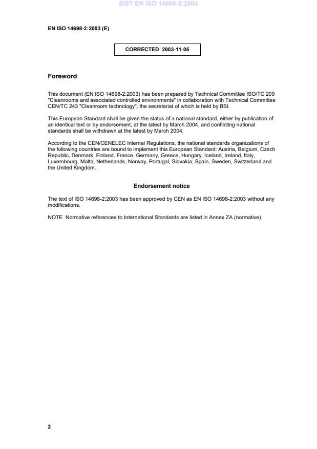 This document (EN ISO 14698-2:2003) has been prepared by Technical Committee ISO/TC 209