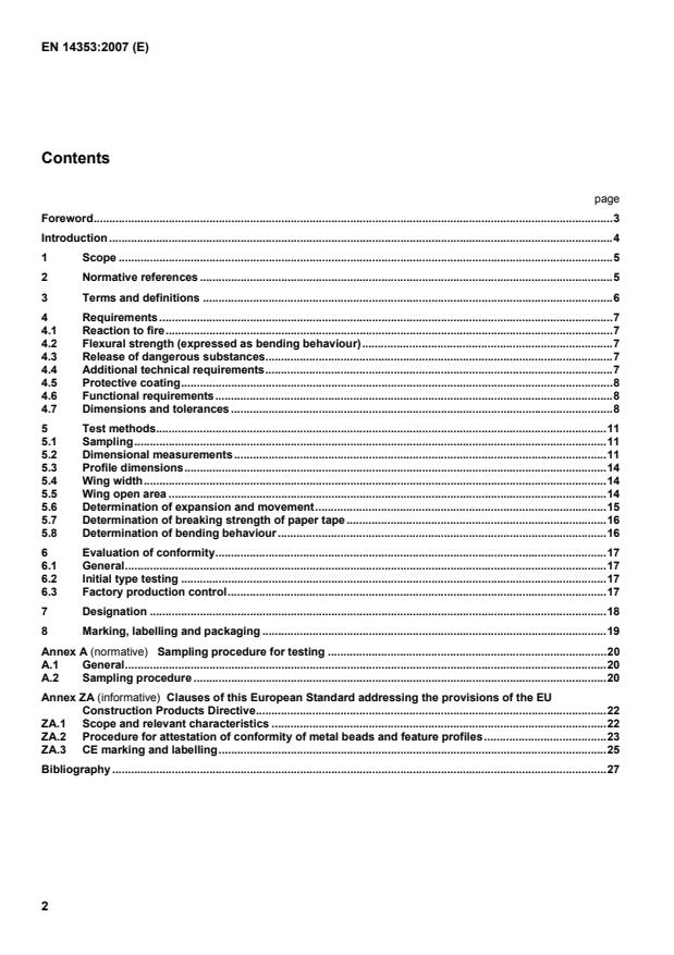 Clauses of this European Standard addressing the provisions of the EU Construction Products Directive.22 ZA.1 Scope and relevant characteristics.22 ZA.2 Procedure for attestation of conformity of metal beads and feature profiles.23 ZA.3 CE marking and labelling.25 Bibliography.27