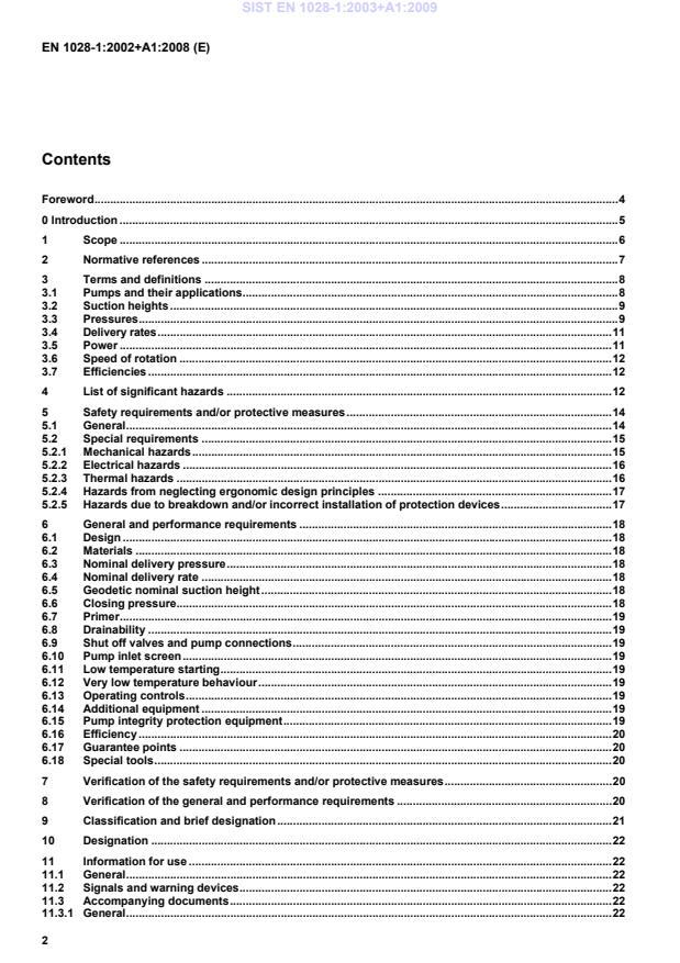 access openings. EN 547-3:1996, Safety of machinery — Human body measurements — Part 3: Anthropometric data. EN 842:1996, Safety of machinery — Visual danger signals — General requirements, design and testing. EN 894-1:1997, Safety of machinery — Ergonomics requirements for the design of displays and control actuators — Part 1: General principles for human interactions with displays and control actuators. EN 894-2:1997, Safety of machinery — Ergonomics requirements for the design of displays and control actuators —- Part 2: Displays. EN 894-3:2000, Safety of machinery — Ergonomics requirements for the design of displays and control actuators — Part 3: Control actuators. EN 953:1997, Safety of machinery — General requirements for the design and construction of fixed and movable guards. EN 1028-2:2002, Fire-fighting pumps — Fire-fighting centrifugal pumps with primer — Part 2: Verification of general and safety requirements. EN 1050:1996, Safety of machinery — Principles for risk assessment. EN 1070:1998, Safety of machinery — Terminology. EN 25199:1992, Technical specifications for centrifugal pumps — Class II (ISO 5199:1986). EN 60204-1:1997, Safety of machinery — Electrical equipment of machines — Part 1: General requirements (IEC 60204-1:1997). EN 60529:1991+A1:2000, Degrees of protection provided by enclosures (IP code) (IEC 60529:1989) + Amendment A1 (IEC 60529:1989/A1:1999). EN 61310-2:1995, Safety of machinery — Indication, marking and actuation — Part 2: Requirements for marking (IEC 61310-2:1995). EN ISO 9905:1997, Technical specifications for centrifugal pumps — Class I (ISO 9905:1994). EN ISO 9908:1997, Technical specifications for centrifugal pumps — Class III (ISO 9908:1993). SIST EN 1028-1:2003+A1:2009