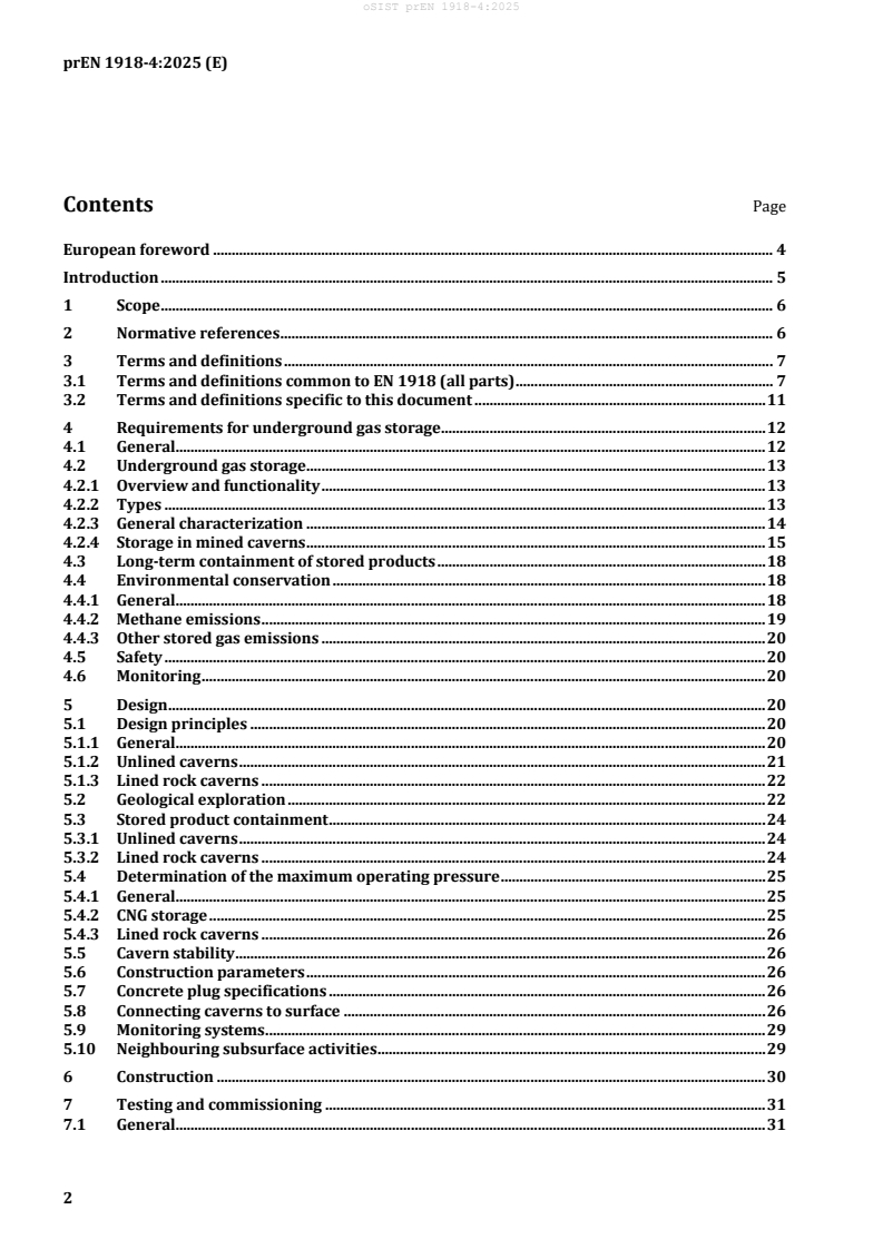 prEN 1918-4 outlines principles for designing both lined and unlined rock caverns, setting parameters to ensure long-term containment, cavern stability, and safe connecting infrastructure. It includes recommendations on geological exploration, maximum operating pressures, concrete plug specifications, and construction parameters.Testing and Commissioning