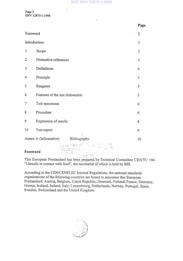 ENV 12875-1:1998 is a standardization document published by the European Committee for Standardization (CEN). Its full title is "Mechanical dishwashing resistance of domestic utensils - Part 1: Reference test method". This standard covers: This European Prestandard specifies a method for testing the resistance of domestic articles made from ceramic, glass, glass ceramic, vitreous enamel, metal and plastics under the combined chemical, thermal and mechanical stresses of mechanical dishwashing in domestic dishwashers. It specifies a reference test method for domestic dishwashing only. It does not define the number of dishwashing cycles which any given product shall withstand.