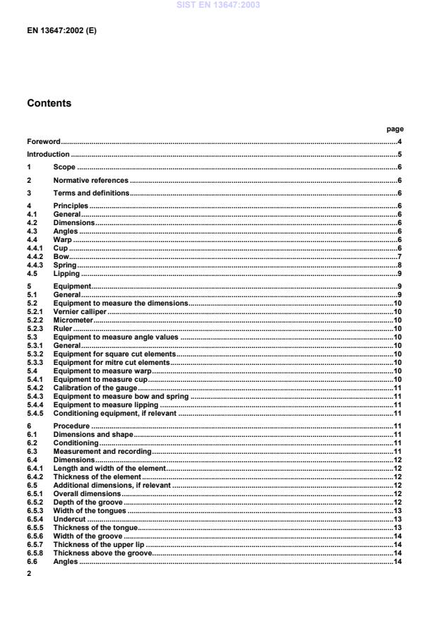 EN 13647:2002 is a standard published by the European Committee for Standardization (CEN). Its full title is "Wood and parquet flooring and wood panelling and cladding - Determination of geometrical characteristics". This standard covers: This European Standard specifies methods of measuring the geometrical characteristics of wood and parquet flooring and wood panelling and cladding elements. This European Standard does not specify sampling, which is intended to be found in the product standards or test methods and it does not apply to elements which are installed.