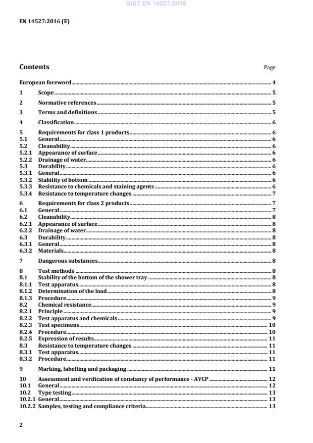 Clauses of this European Standard addressing the provisions of the EU Construction Products Regulation . 19 ZA.1 Scope and relevant characteristics . 19 ZA.2 Procedure for assessment and verification of constancy of performance (AVCP) of shower trays . 20 ZA.2.1 System of AVCP . 20 ZA.2.2 Declaration of performance (DoP) . 20 ZA.3 CE marking and labelling . 25 Bibliography . 27