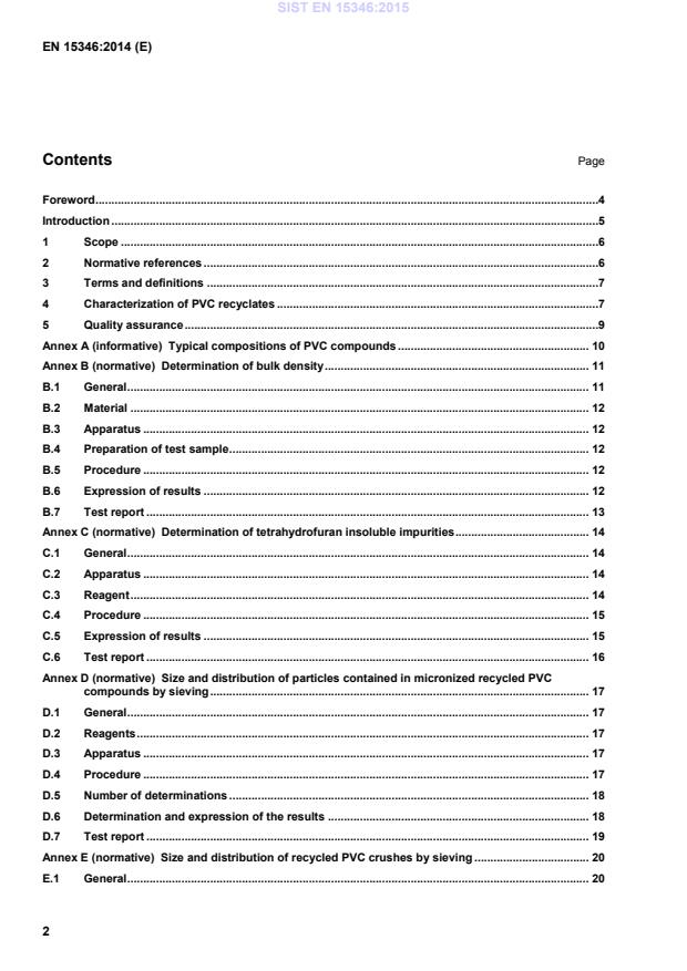 Size and distribution of recycled PVC crushes by sieving . 20 E.1 General . 20 SIST EN 15346:2015