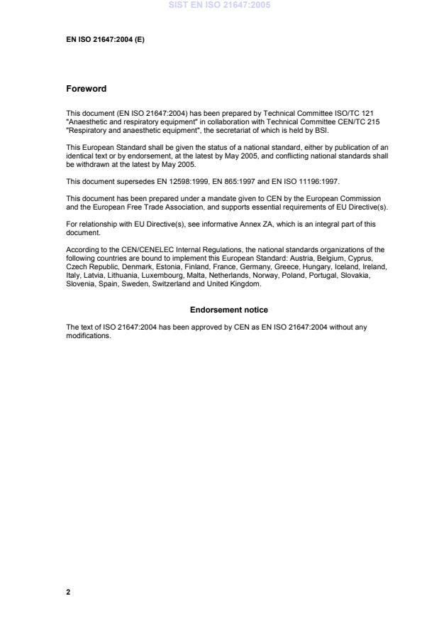 EN ISO 21647:2004 is classified under the following ICS (International Classification for Standards) categories: 11.040.10 - Anaesthetic, respiratory and reanimation equipment. The ICS classification helps identify the subject area and facilitates finding related standards.