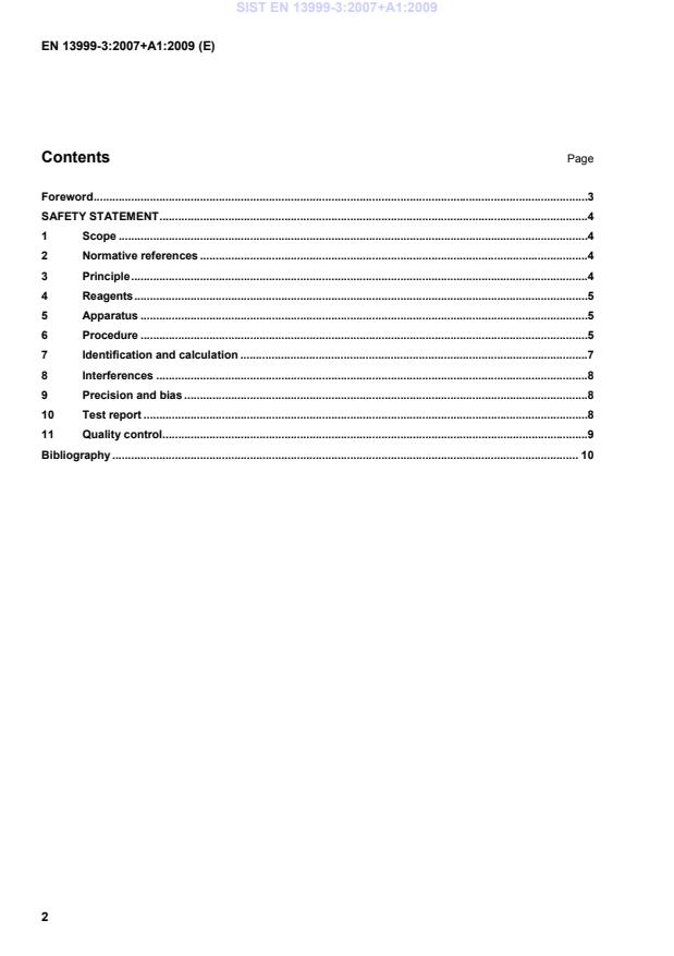 SAFETY STATEMENT Persons using this European Standard should be familiar with the normal laboratory practice, if applicable. This European Standard does not purport to address all of the safety problems, if any, associated with its use. It is the responsibility of the user to establish appropriate health and safety practices and to ensure compliance with any regulatory conditions. 1 Scope This European Standard specifies a procedure for the determination of volatile aldehydes (especially formaldehyde and acetaldehyde) and other carbonyl compounds in the exhaust air of an emission test chamber after application of a low-solvent or solvent-free adhesive as defined in EN 923. The method is based on chemosorption of volatile carbonyl compounds with 2,4-dinitrophenylhydrazine (in the following: DNPH) impregnated silica tubes or cartridges with subsequent solvent desorption, clean-up and liquid chromatographic analysis. The method permits measurement of several aldehydes including formaldehyde, acetaldehyde, propionaldehyde, butyraldehyde, valeraldehyde, isovaleraldehyde, hexanal, benzaldehyde, 2,5-dimethylbenzaldehyde, o-tolualdehyde, m-tolualdehyde, p-tolualdehyde, crotonaldehyde in the concentration range of approximately 10 µg/m³ to 1 mg/m³ (see ISO 16000-3). 2 Normative references The following referenced documents are indispensable for the application of this document. For dated references, only the edition cited applies. For undated references, the latest edition of the referenced document (including any amendments) applies. EN 1232, Workplace atmospheres — Pumps for personal sampling of chemical agents — Requirements and test methods EN 13999-1, Adhesives — Short term method for measuring the emission properties of low-solvent or solvent-free adhesives after application — Part 1: General procedure EN ISO 16000-9, Indoor air — Part 9: Determination of the emission of volatile organic compounds from building products and furnishing — Emission test chamber method (ISO 16000-9:2006) ISO 16000-3, Indoor air — Part 3: Determination of formaldehyde and other carbonyl compounds — Active sampling method 3 Principle A sufficient volume of test chamber air is drawn with an appropriate flow through silicagel tubes or cartridges impregnated with 2,4-dinitrophenylhydrazine (DNPH) reagent. Any organic aldehydes and other carbonyl compounds present will react to form non-volatile dinitrophenylhydrazones. Desorption is done with acetonitrile. The resultant solution is concentrated and analysed by high performance liquid chromatography (HPLC) with ultraviolet (UV) detection. Dinitrophenylhydrazone peaks from formaldehyde, acetaldehyde and other aldehydes are identified on the basis of both their respective retention times and their UV responses at more than one wavelength and/or by diode array detection (DAD) and comparison with a derivative product (where available) or standard. Quantification is done by comparison with a relevant aldehyde or a dinitrophenylhydrazone standard. SIST EN 13999-3:2007+A1:2009