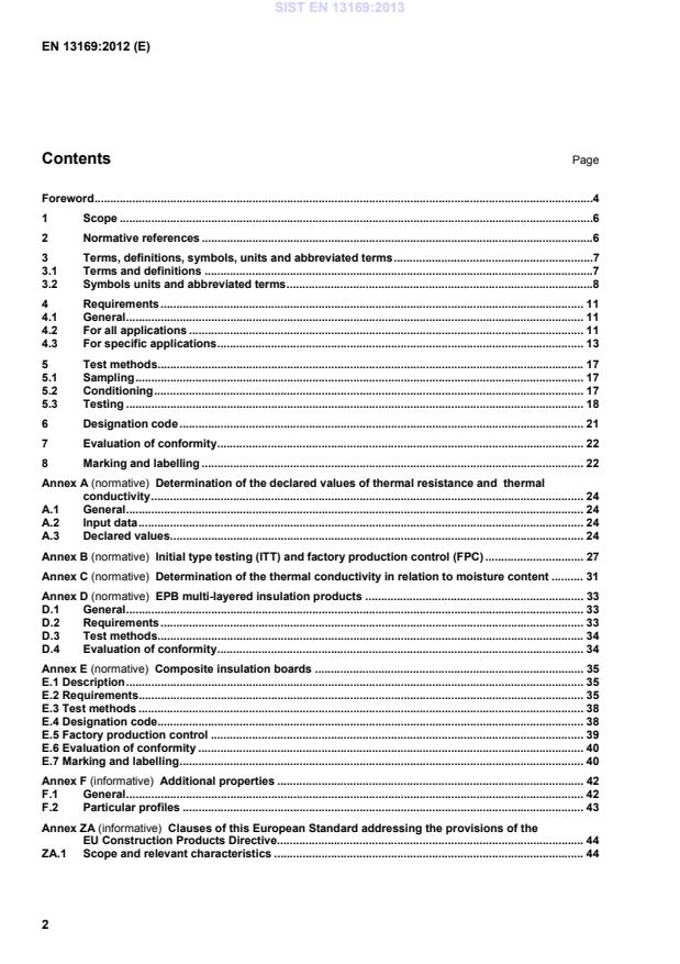 Clauses of this European Standard addressing the provisions of the EU Construction Products Directive. 44ZA.1Scope and relevant characteristics . 44SIST EN 13169:2013