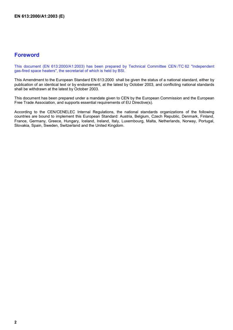 This amendment A1 modifies the European Standard EN 613:2000; it was approved by CEN on 7 February 2003.