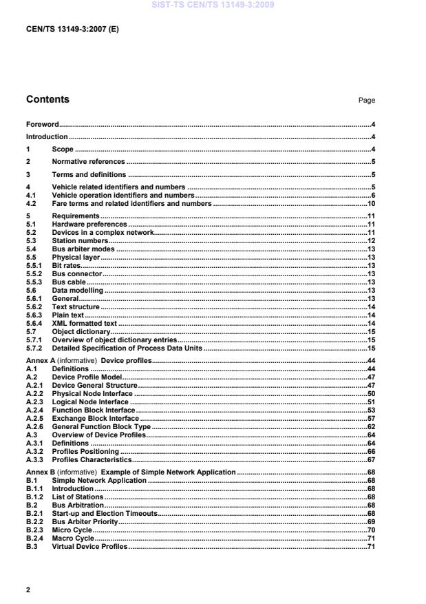 CEN/TS 13149-3:2007 is a technical specification published by the European Committee for Standardization (CEN). Its full title is "Public transport - Road vehicle scheduling and control systems - Part 3: WorldFIP message content". This standard covers: This Technical Specification specifies the choice and the general application's rules of an onboard data transmission bus between the different equipment for service operations and monitoring of the fleet. This applies to equipment installed onboard buses, trolley-buses and tramways only as part of a bus fleet operation. It excludes tramways when they are operated as part of a train, subway or metro operation. This equipment includes operation aid systems, automatic passenger information systems, fare collection systems, etc. The equipment directly related to the safety-related functioning of the vehicle (propulsion management, brake systems, door opening systems, etc...) are excluded from the scope of the present standard and are dealt with in other standardisation bodies. For the described application two bus systems are standardised. Part 1 to part 3 of EN 13149 describe the WorldFIP bus system and part 4 to part 6 describe the CANopen bus system. There is no ranking between the two bus systems. The present Technical Specification covers the link between equipment inside a single vehicle. Although it could be applied to multiple vehicles, this application is not explicitly covered by this standard. Part 1 of EN 13149 specifies the WorldFIP-based network. This specification describes the general architecture in terms of hierarchical layers according to the ISO reference model for Open Systems Interconnection (OSI) specified in ISO 7498. Part 2 of EN 13149 specifies in detail the connectors and the connector pin assignment and the cabling. Part 3 (this Technical Specification) specifies in detail the application profiles for a simple network.