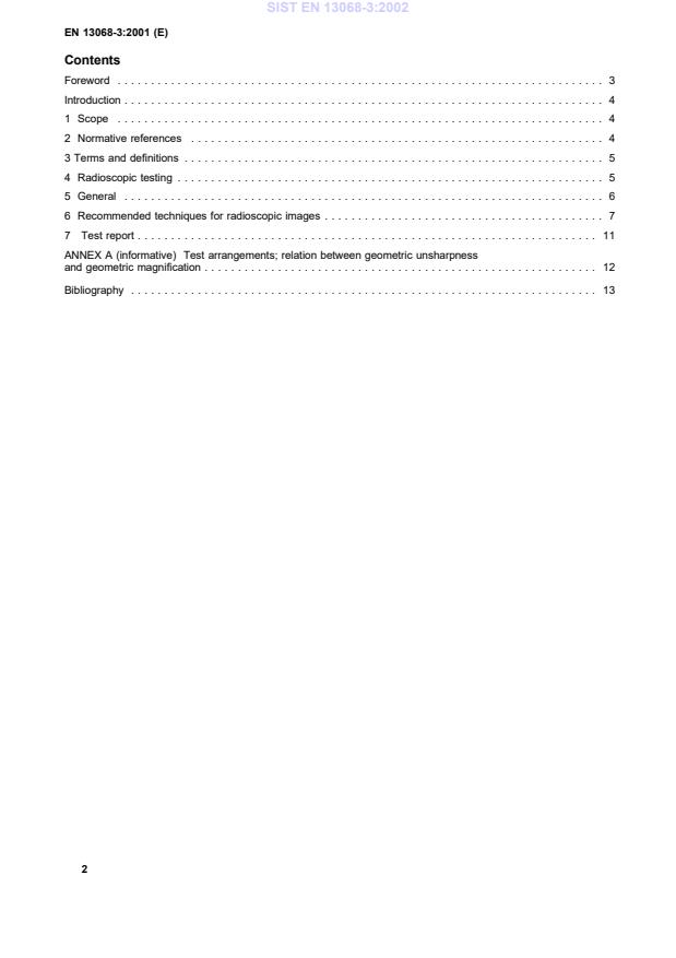 Test arrangements; relation between geometric unsharpness and geometric magnification.12Bibliography.132SIST EN 13068-3:2002