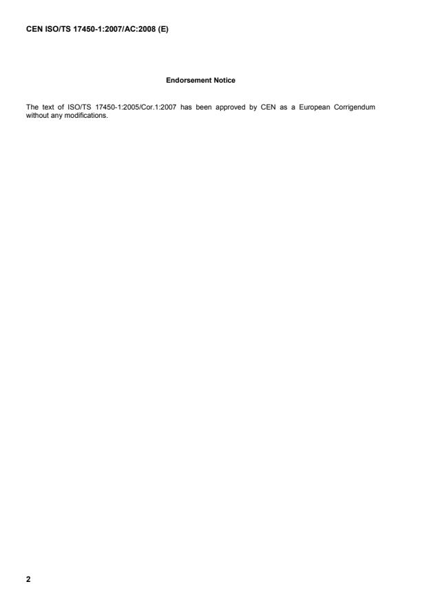 CEN ISO/TS 17450-1:2007/AC:2008 is available in PDF format for immediate download after purchase. The document can be added to your cart and obtained through the secure checkout process. Digital delivery ensures instant access to the complete standard document.