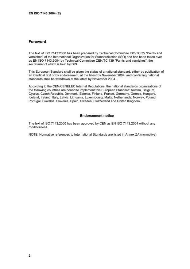The text of ISO 7143:2000 has been prepared by Technical Committee ISO/TC 35 "Paints and
