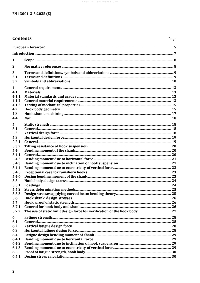 Keywords: EN 13001-3-5:2025, crane hooks, forged hooks, cast hooks, limit states, static strength, fatigue strength, hook shank, proof of competence, crane design.