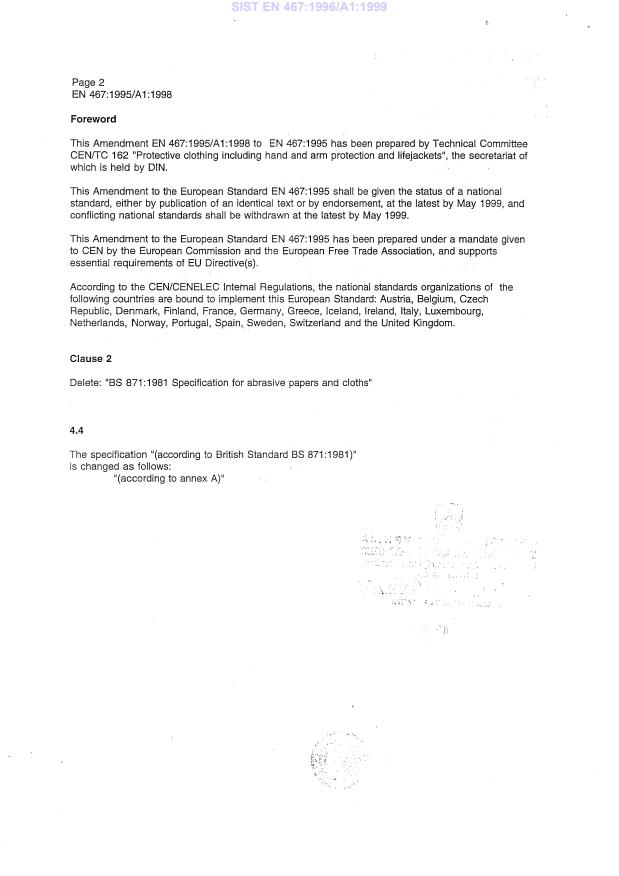 EN 467:1995/A1:1998