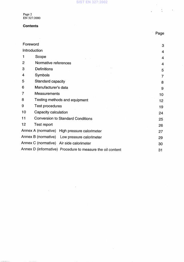 EN 327:2000 is a standard published by the European Committee for Standardization (CEN). Its full title is "Heat exchangers - Forced convection air cooled refrigerant condensors - Test procedure for establishing performance". This standard covers: This European Standard applies to non ducted forced convection air cooled refrigerant condensers with dry air side surface within which the refrigerant changes phases. Its purpose is to establish uniform methods of performance assessment. It does not deal with evaluation of conformity. This European Standard does not apply to air cooled condensers, designed primarily for installation within the machinery compartment of packaged products or in factory-assembled condensing units.