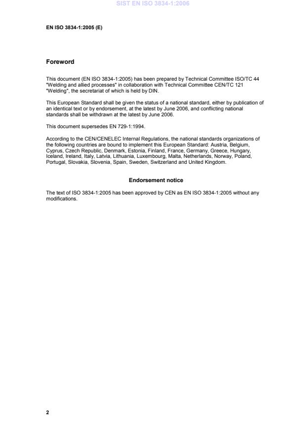 Der Text von ISO 3834-1:2005 wurde vom CEN als EN ISO 3834-1:2005 ohne irgendeine Abänderung