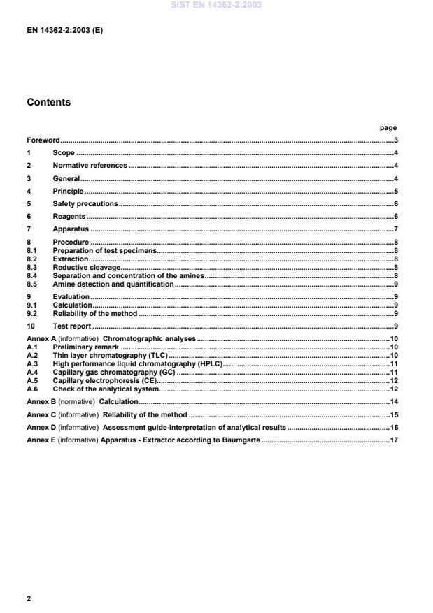 Assessment guide-interpretation of analytical results.16Annex E (informative) Apparatus - Extractor according to Baumgarte.17SIST EN 14362-2:2003