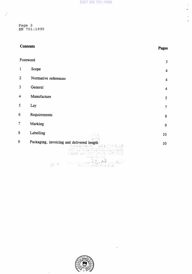 EN 701:1995 is a standard published by the European Committee for Standardization (CEN). Its full title is "Fibre ropes for general service - General specification". This standard covers: This European Standard specifies the general characteristics of fibre ropes for general service whatever their constituent material.