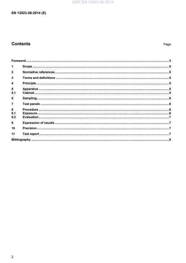 Foreword . 3 1 Scope . 5 2 Normative references . 5 3 Terms and definitions . 5 4 Principle . 5 5 Apparatus . 5 5.1 Cabinet . 5 6 Sampling . 6 7 Test panels . 6 8 Procedure . 6 8.1 Exposure . 6 8.2 Evaluation . 7 9 Expression of results . 7 10 Precision . 7 11 Test report . 7 Bibliography . 8