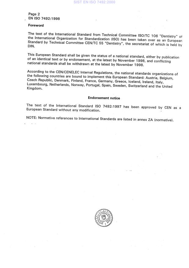 INTERNATIONAL STANDARD IS0 7492 Second edition I 997~02- I 5 Dental explorers Sondes explora trices den taires Reference number IS0 7492: 1997(E) SIST EN ISO 7492:2000