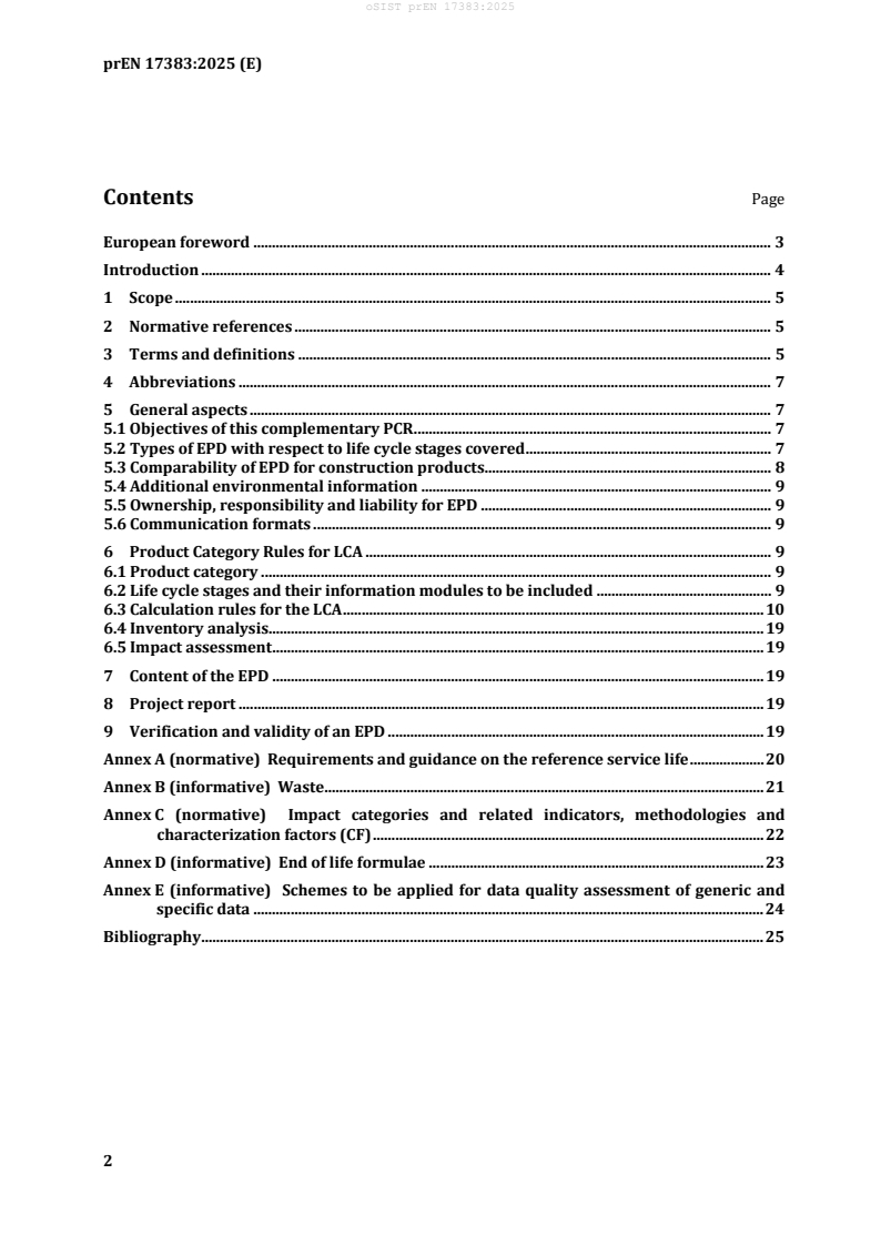 - ISO 21930:2017 – Sustainability in buildings and civil engineering works - Environmental declaration of building products, providing definitions and principles referenced in prEN 17383.