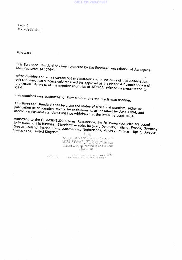 EN 2693:1993 has the following relationships with other standards: It is inter standard links to EN 2693:2005. Understanding these relationships helps ensure you are using the most current and applicable version of the standard.