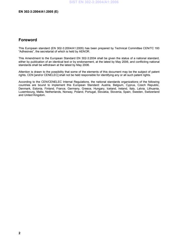 This European standard (EN 302-3:2004/A1:2005) has been prepared by Technical Committee CEN/TC 193